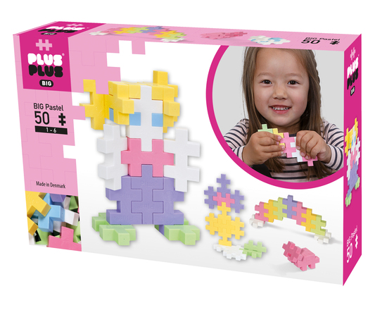 Ce set contient 50 pièces de Plus-Plus BIG couleur pastel et un guide de construction de 15 pages pour construire les éléments visibles sur la boîte et plus encore.