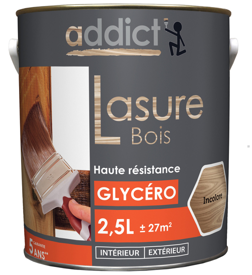 Lasure bois glycéro longue durée pour intérieur et extérieur.
