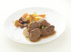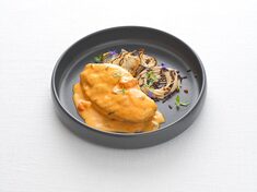 Purée onctueuse au butternut, agrémentée de noisettes concassées.